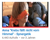 Echte Heilung ist immer Selbstheilung. Eine Methode kann nur dabei helfen. Daher kann niemand heilen - die Schulmedizin schon mal garnicht. Sie bekämpft nur die Symptome. Wer weiß schon im Einzelfall, ob die Chemo beim Überleben oder Sterben geholfen hat. Jeder muß sich selbst heilen, denn sein Leben hat ihn krank gemacht. Also gilt es als erstes herauszufinden, was im Hintergrund arbeitet - im Gedächtnisspeicher PSYCHE. Dazu wurde der Synergetik Profiler schon 2001 von Bernd Joschko entwickelt. Er deckt präzise auf. Die nebenstehende Playlist von Youtube startete vor 10 Jahren und zeigt 80 Beispiele. Die Videos wurden ca. 250.000 mal angeklickt. |