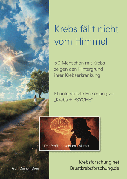 Selbstheilung bei Brustkrebs Sabrina hat Brustkrebs rechts und macht einen Therapieaufenthalt von 7 Tagen bei Bernd Joschko im Kamala. Astrid Gugel interviewt sie und fragt nach ihrer Motivation - 2023 Grundsätzlich gilt: Die PSYCHE des Menschen ist sehr komplex und es gilt immer eine Mustersuche von 6-8 Faktoren, um lebenshemmende Vernetzungen im Unterbewusstsein aufzufinden. Warum bin ich krank? Warum habe ich “Krebs”? |