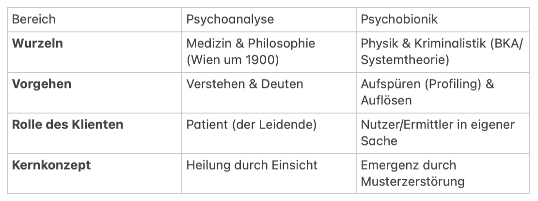 Der Unterschied zwischen der modernen Psychoanalyse und der Psychobionik